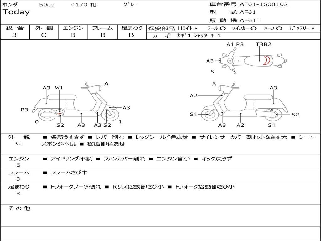 | Номер рамы / VIN | AF61-1608102 |