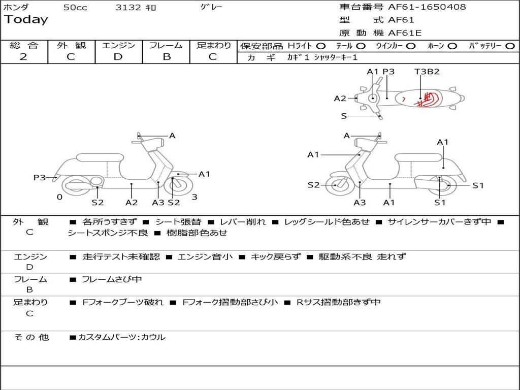 | Номер рамы / VIN | AF61-1650408 |