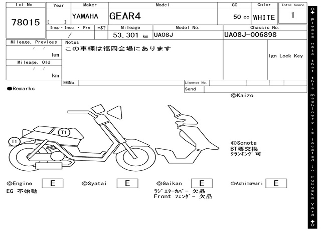 | Номер рамы / VIN | UA08J-006898 |