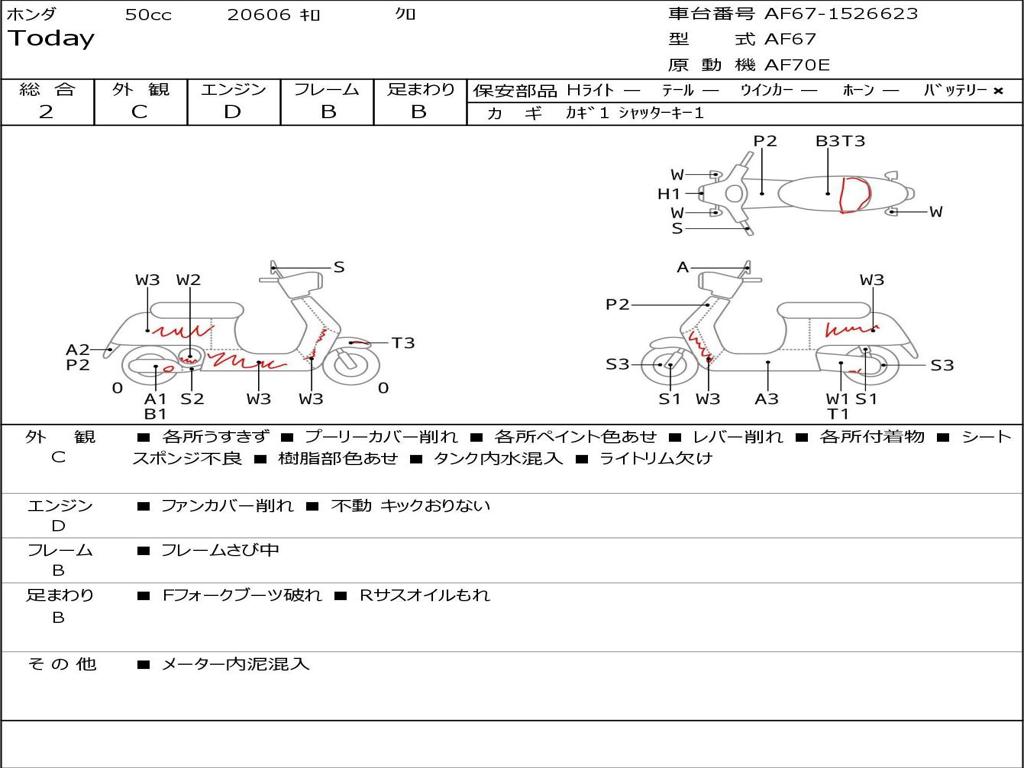 | Номер рамы / VIN | AF67-1526623 |
