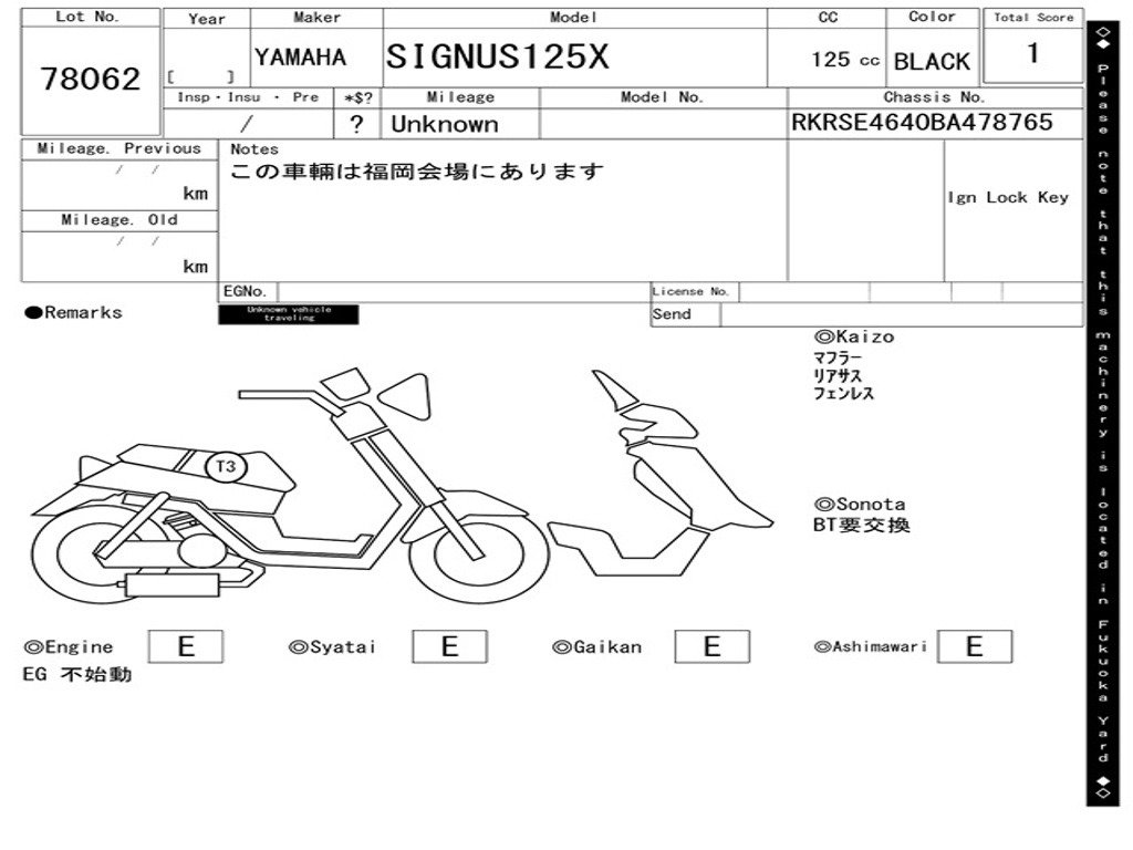 | Номер рамы / VIN | RKRSE4640BA478765 |