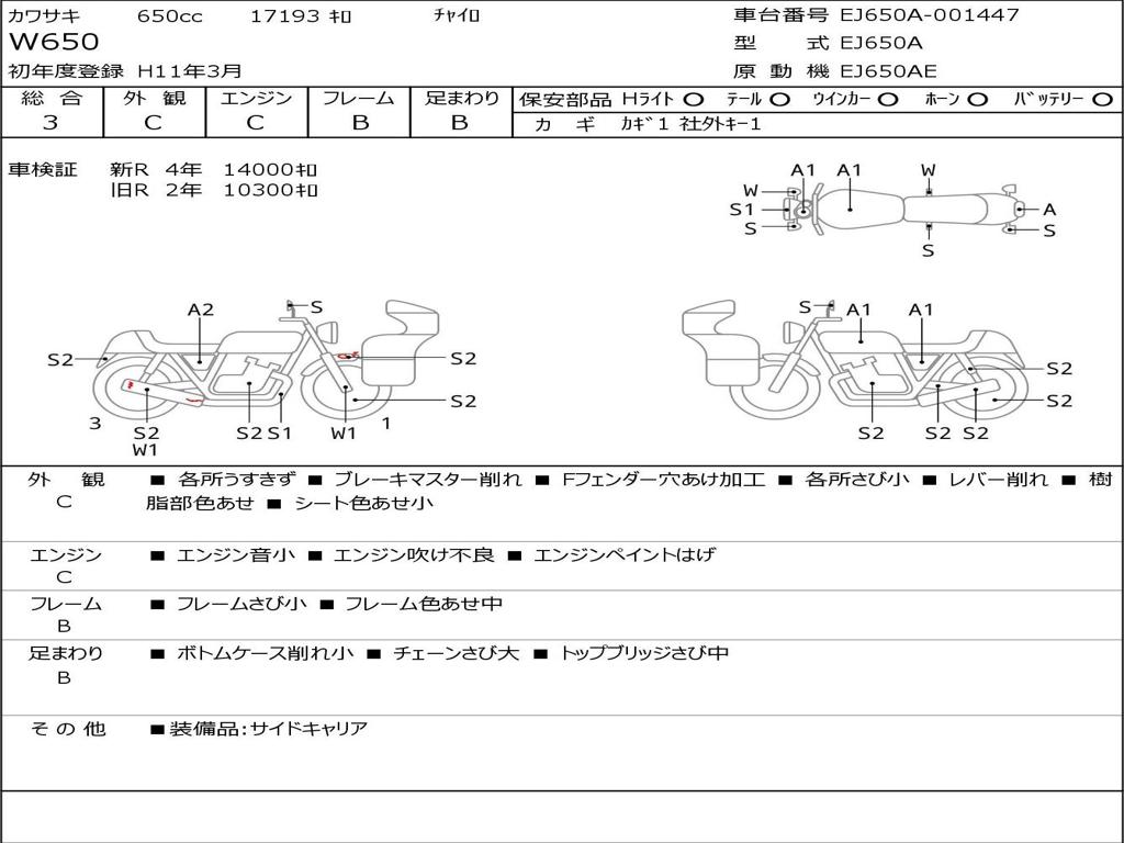 | Номер рамы / VIN | EJ650A-001447 |