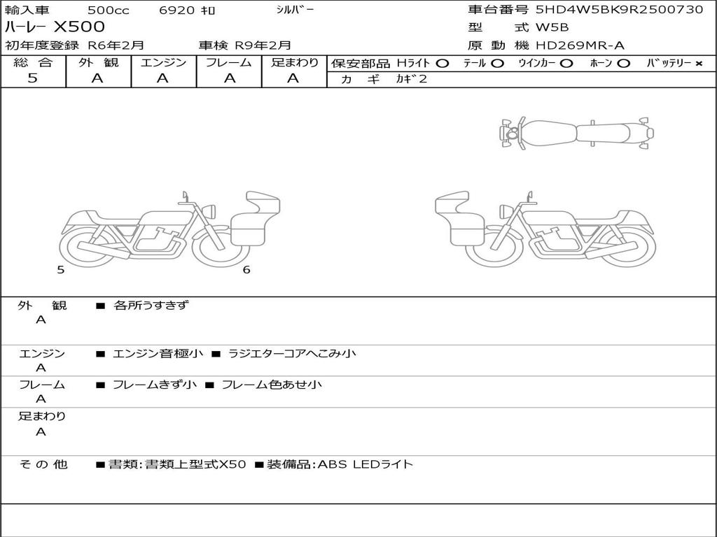 | Номер рамы / VIN | 5HD4W5BK9R2500730 |