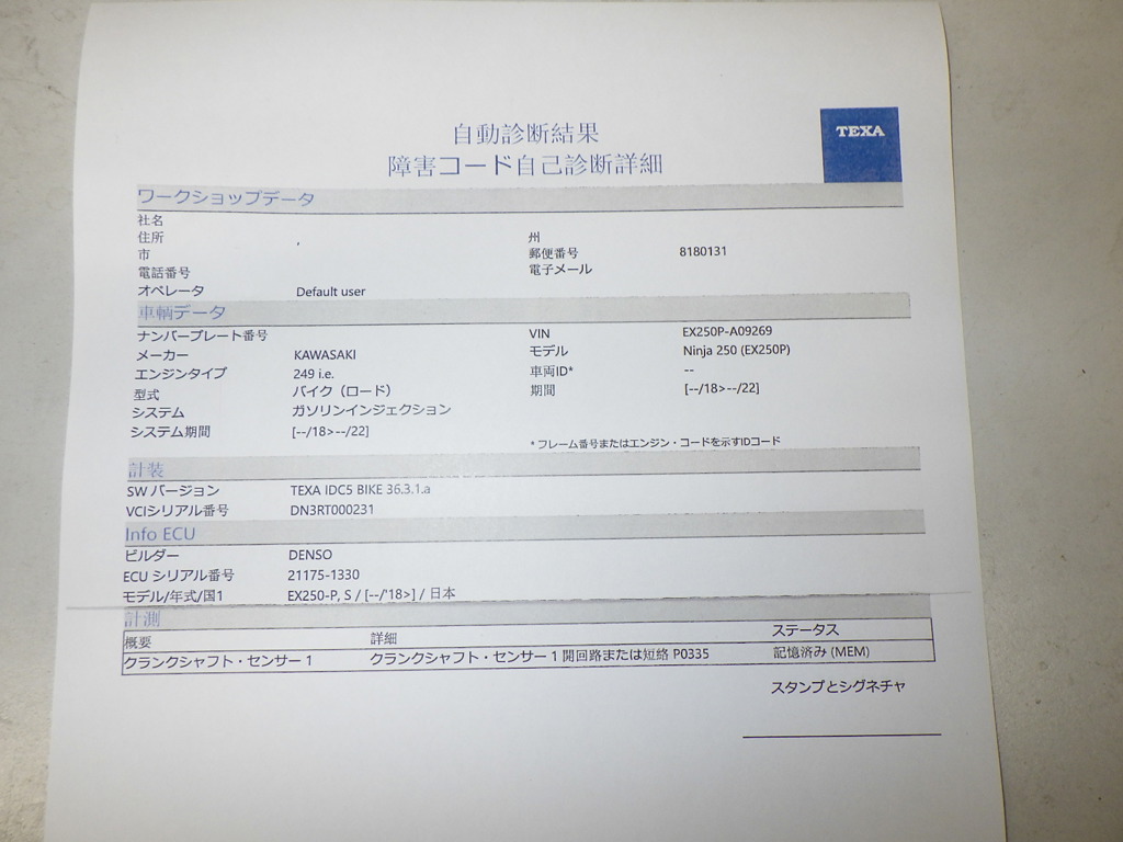| Номер рамы / VIN | EX250P-A09269 |