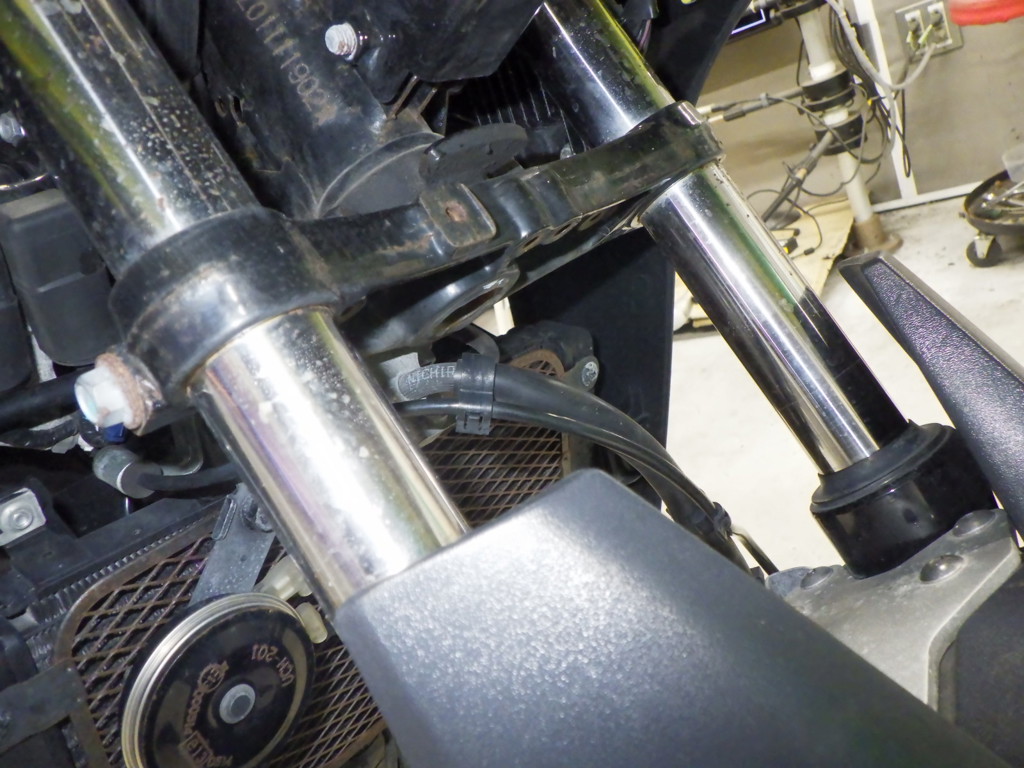 | внешняя часть вилки | царапины, потек масла |