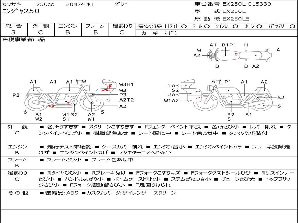 | Номер рамы / VIN | EX250L-015330 |