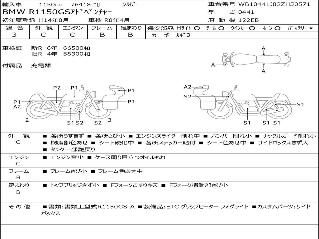 | Номер рамы / VIN | WB10441J82ZH50571 |