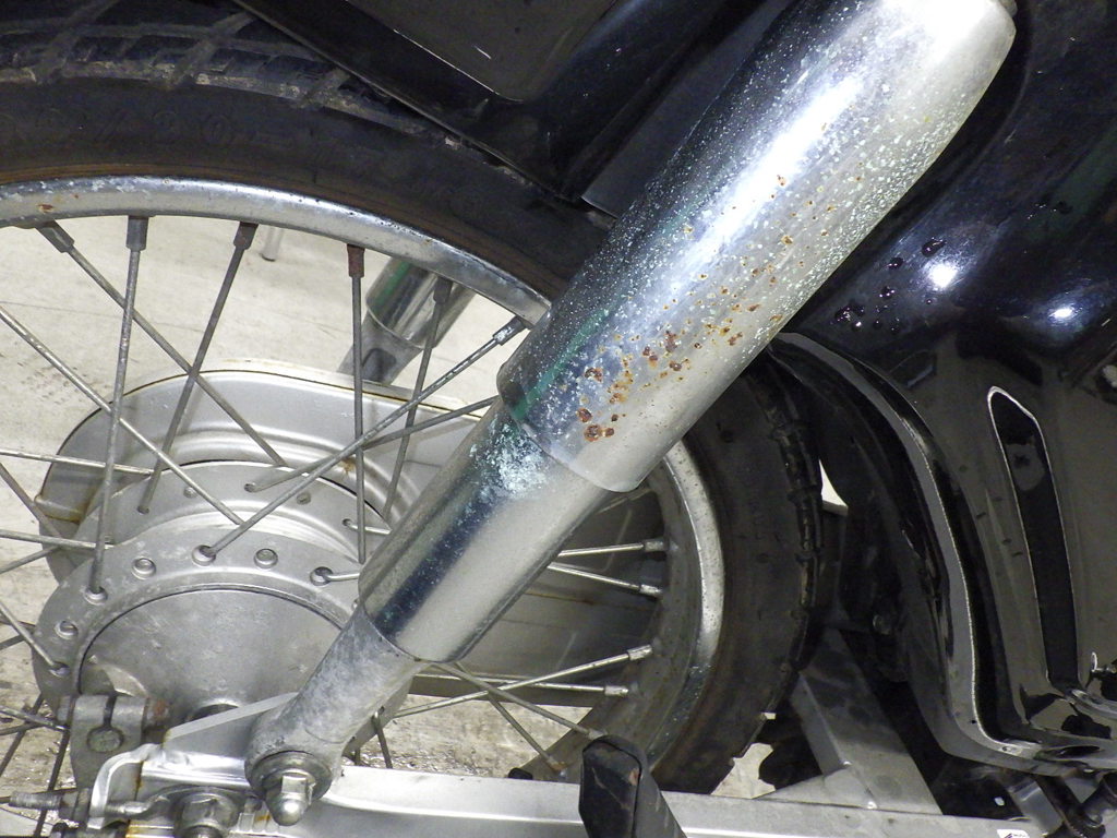 | внешняя часть вилки | царапины, потек масла <много> |