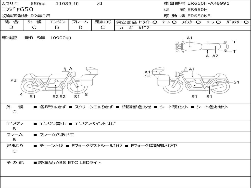 | Номер рамы / VIN | ER650H-A48991 |