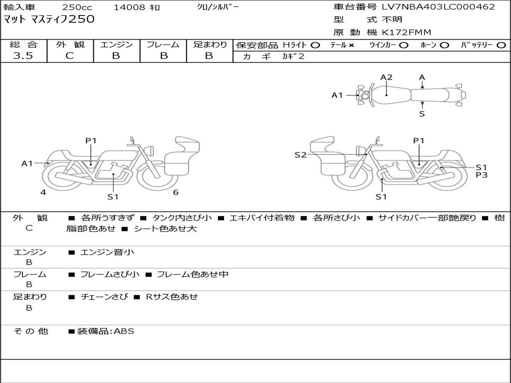 | Номер рамы / VIN | LV7NBA403LC000462 |