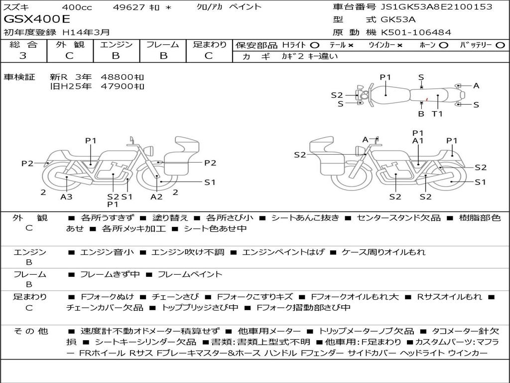 | Номер рамы / VIN | JS1GK53A8E2100153 |