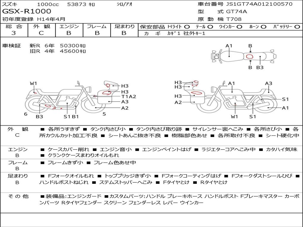 | Номер рамы / VIN | JS1GT74A012100570 |