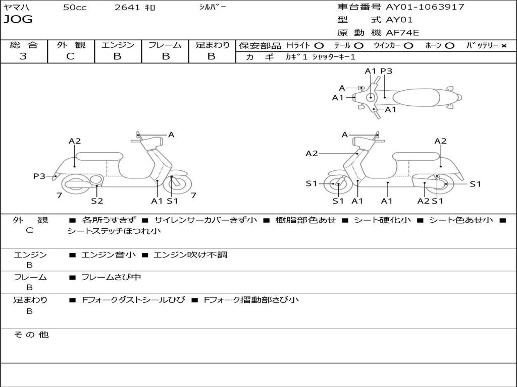 | Номер рамы / VIN | AY01-1063917 |