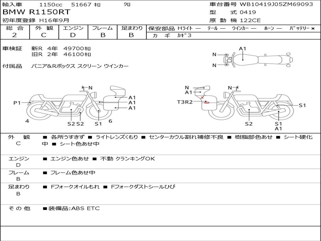 | Номер рамы / VIN | WB10419J05ZM69093 |