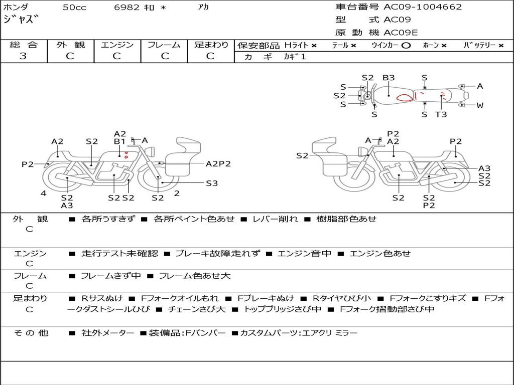 | Номер рамы / VIN | AC09-1004662 |