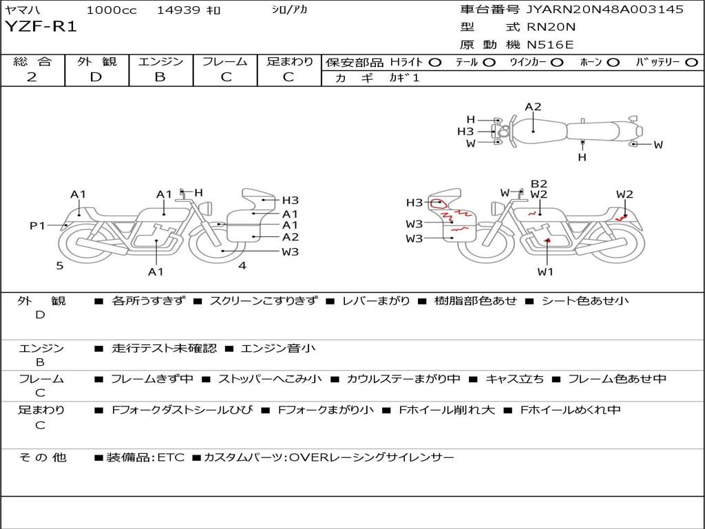 | Номер рамы / VIN | JYARN20N48A003145 |