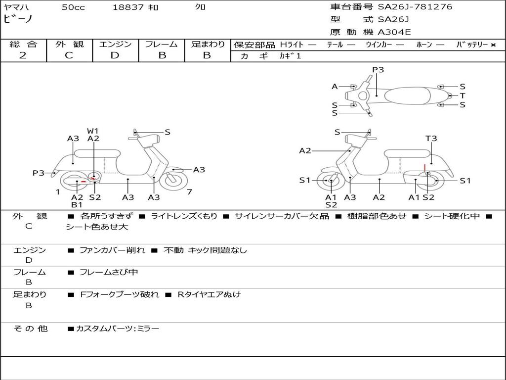 | Номер рамы / VIN | SA26J-781276 |