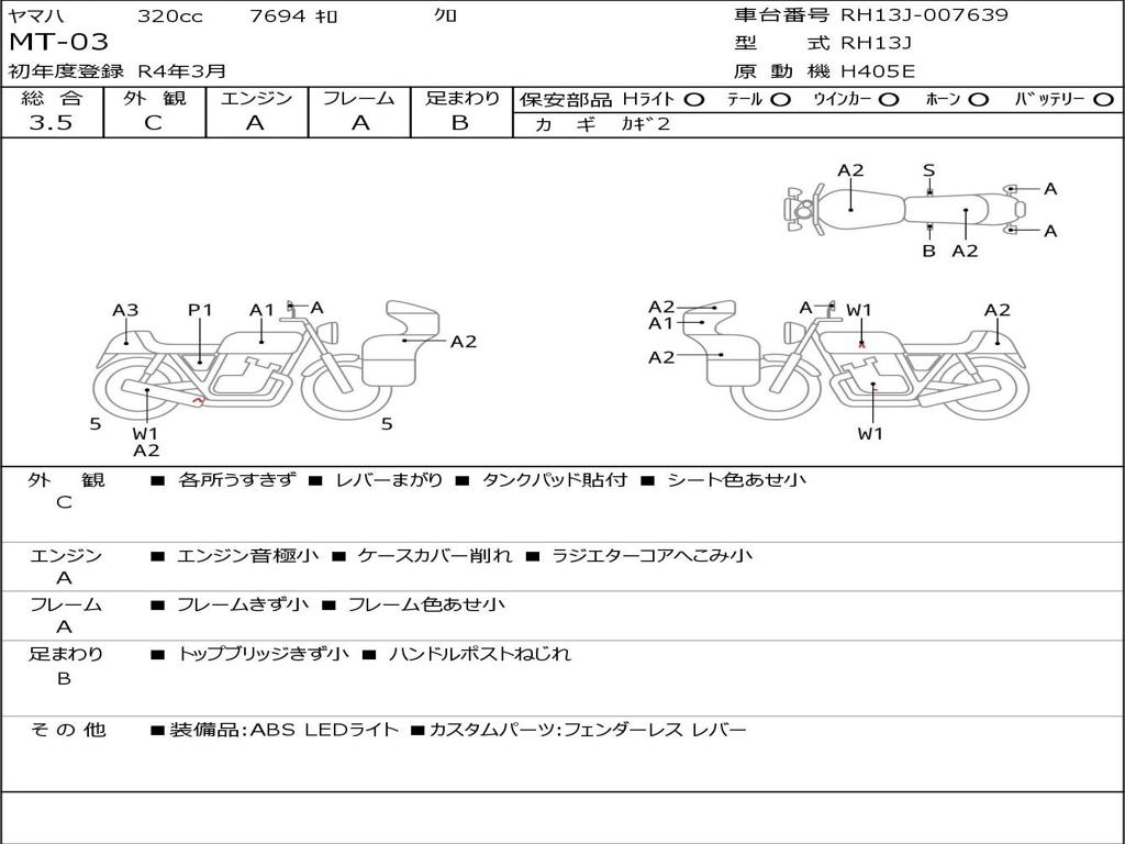 | Номер рамы / VIN | RH13J-007639 |