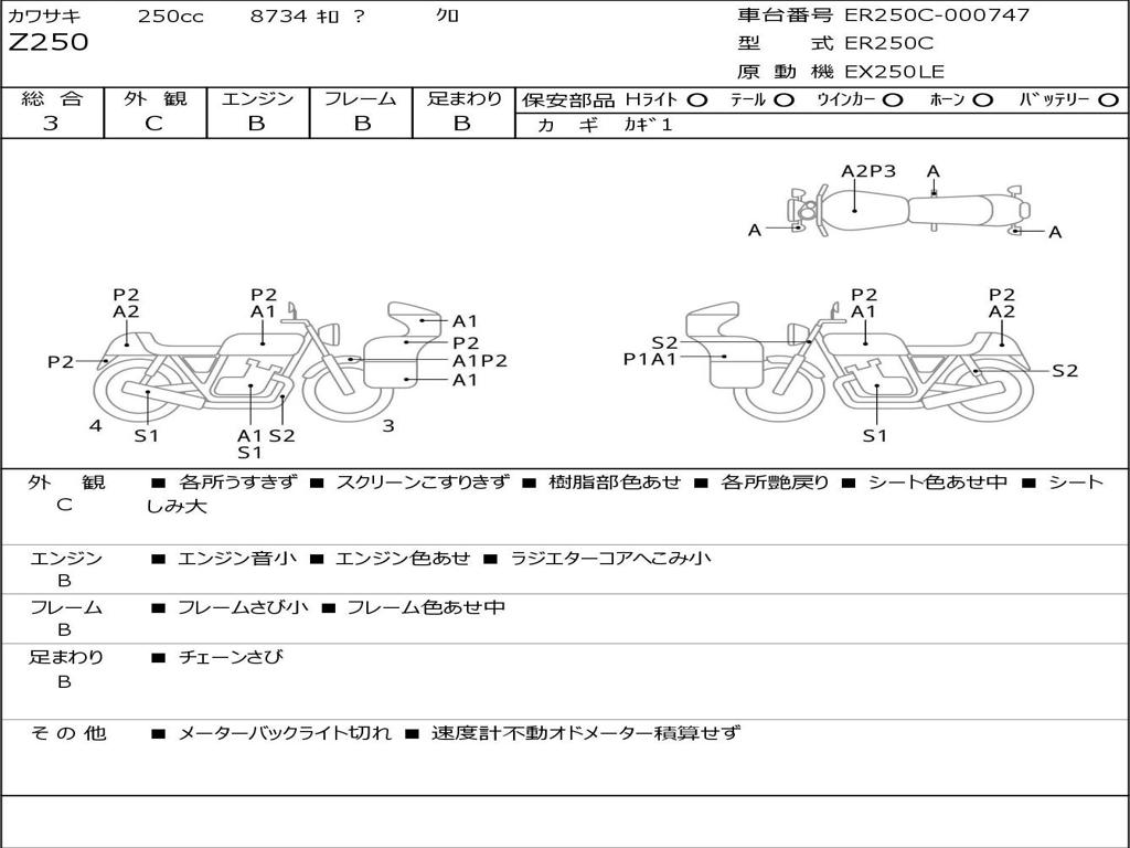 | Номер рамы / VIN | ER250C-000747 |