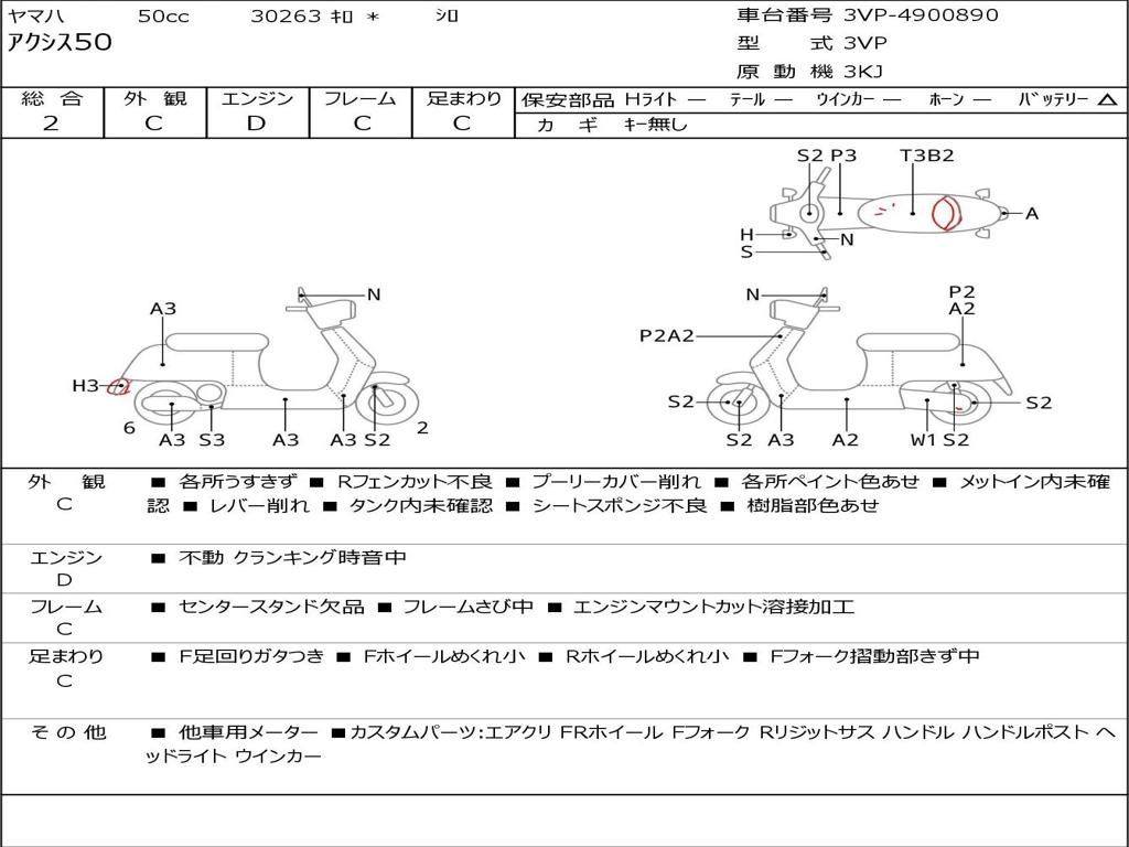 | Номер рамы / VIN | 3VP-4900890 |