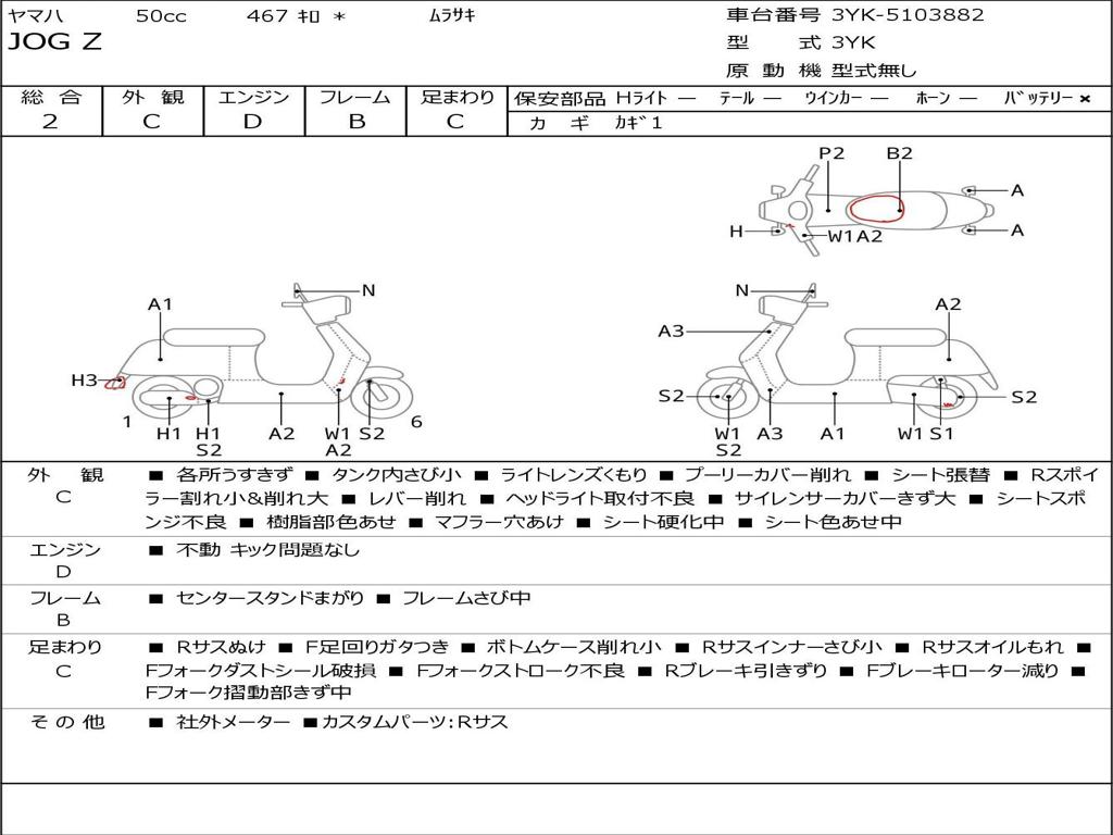 | Номер рамы / VIN | 3YK-5103882 |
