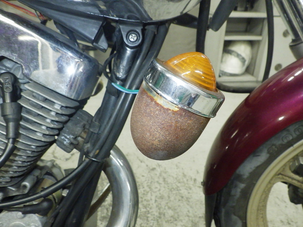| поворотник | следы коррозии <много>, неисправен шарнир, неоригинал |
