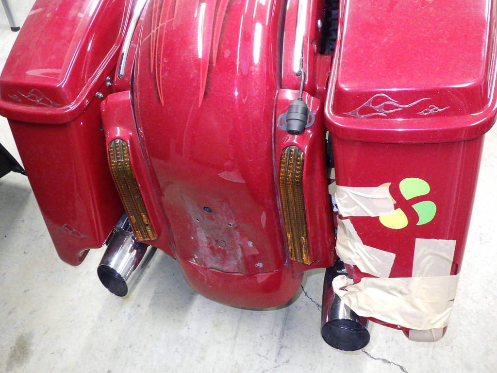| заднее крыло | царапины <много>, вмятина <много>, деформация <много>, трещины |