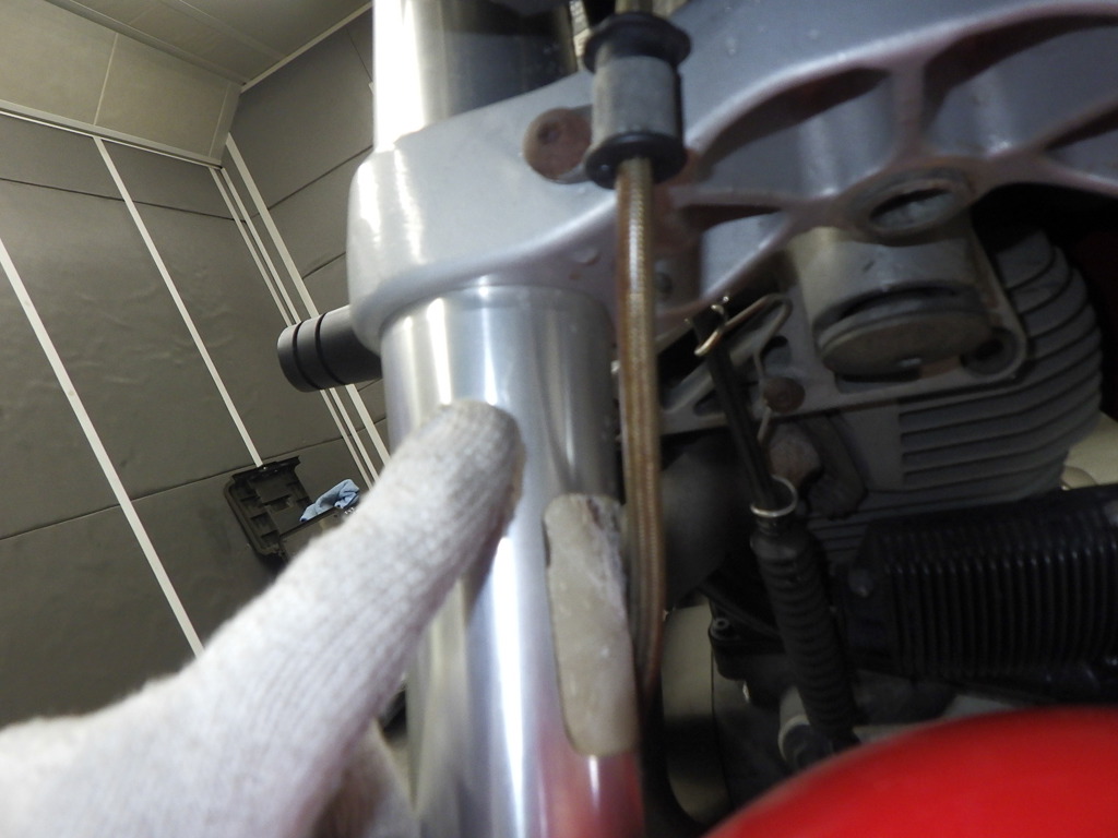 | внешняя часть вилки | следы коррозии, потек масла <много>, трещины <немного> |