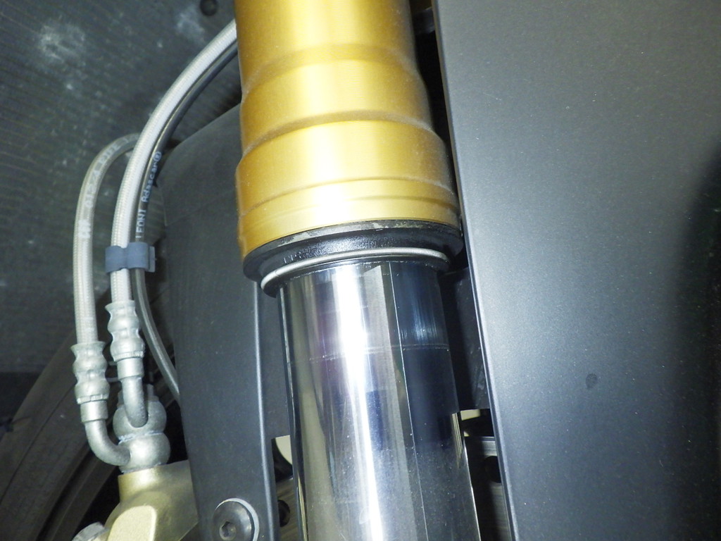 | внешняя часть вилки | потек масла |