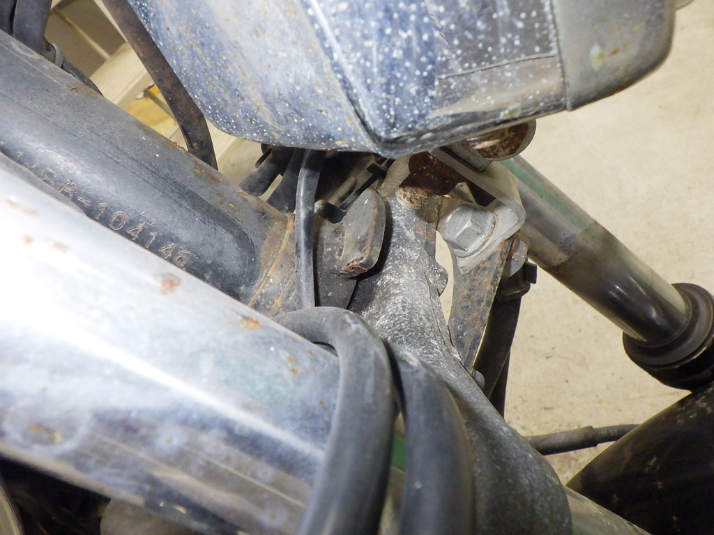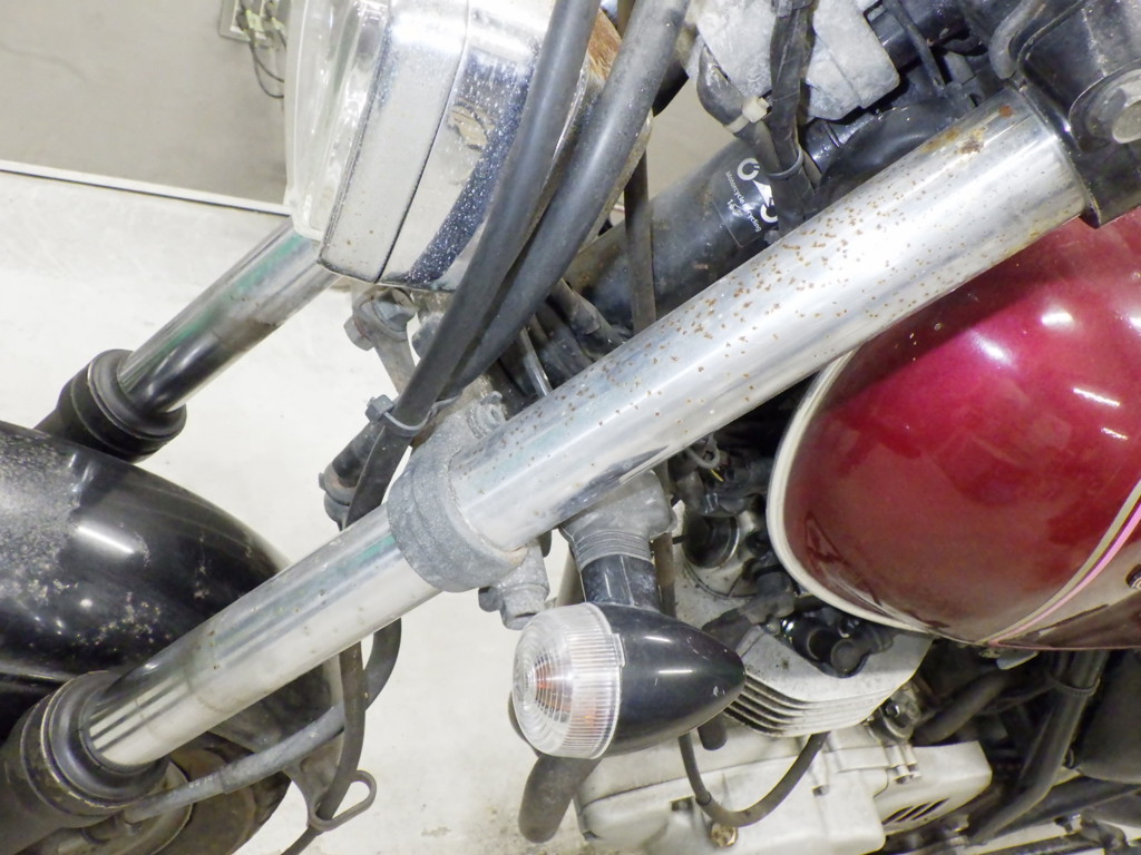 | внешняя часть вилки | следы коррозии <много>, потек масла |