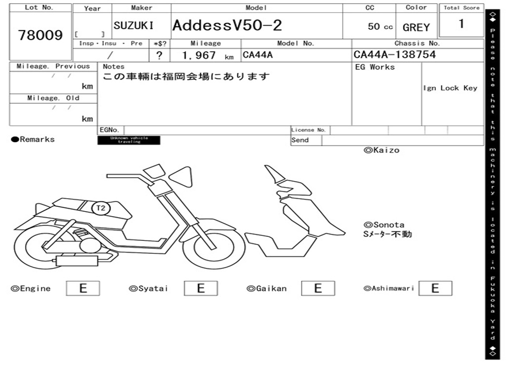 | Номер рамы / VIN | CA44A-138754 |