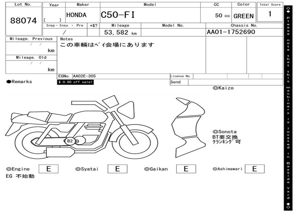 | Номер рамы / VIN | AA01-1752690 |