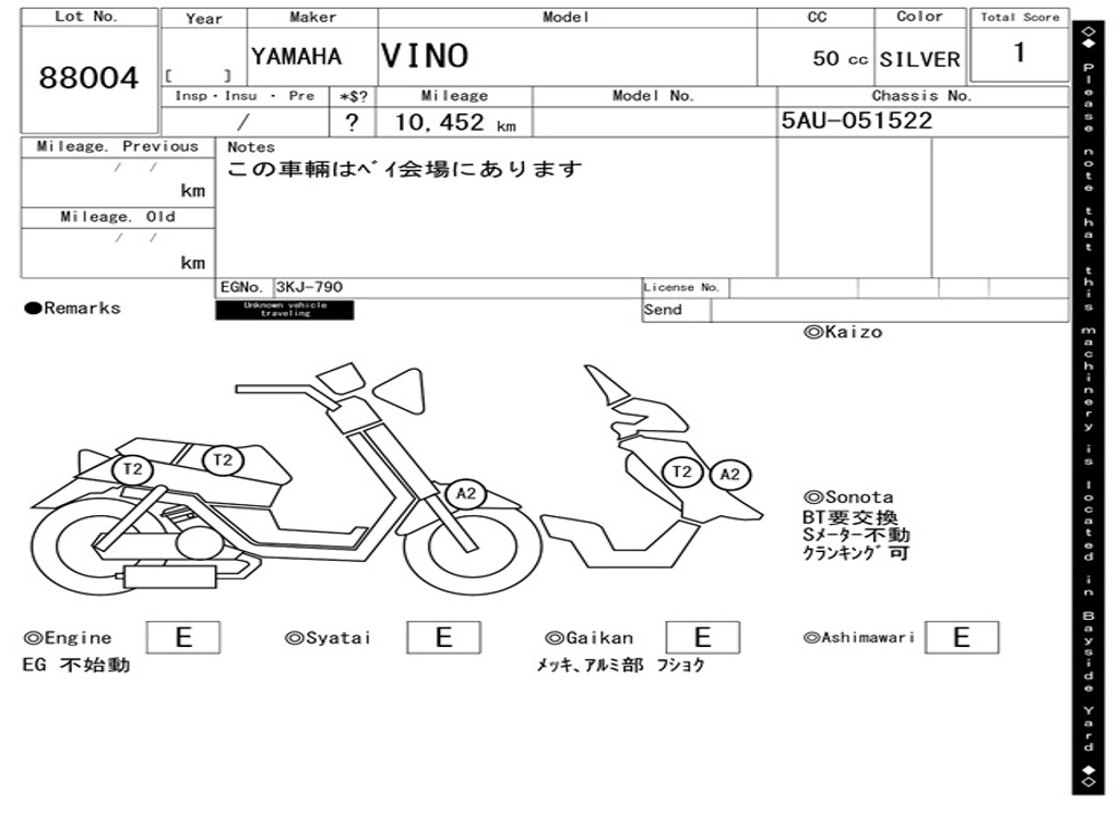 | Номер рамы / VIN | 5AU-051522 |