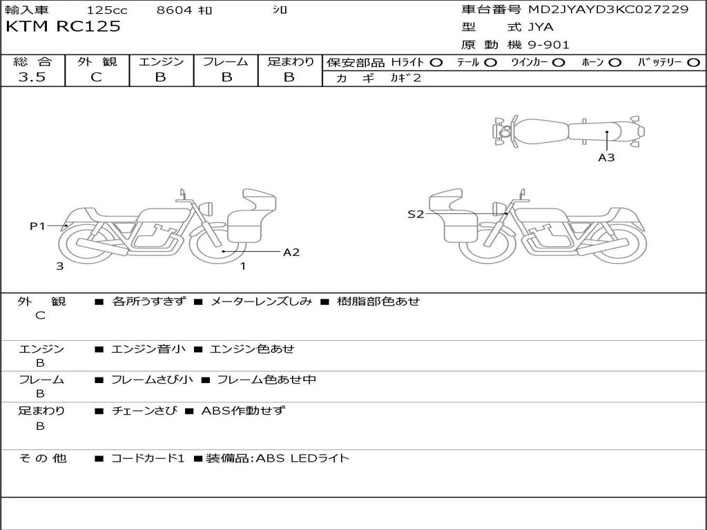 | Номер рамы / VIN | MD2JYAYD3KC027229 |