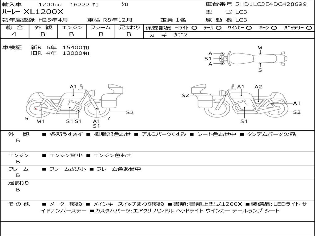 | Номер рамы / VIN | 5HD1LC3E4DC428699 |