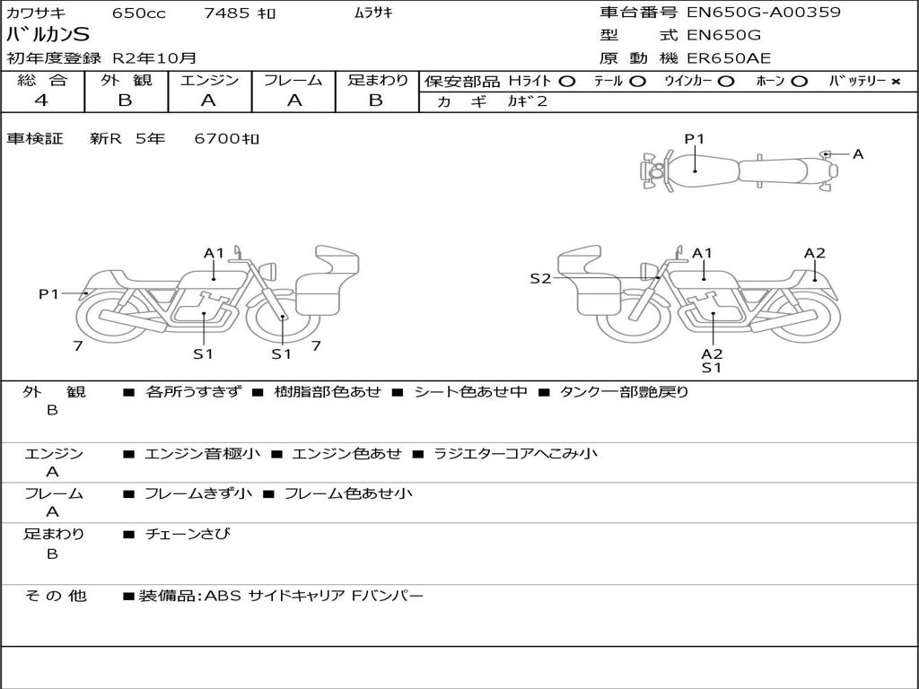 | Номер рамы / VIN | EN650G-A00359 |