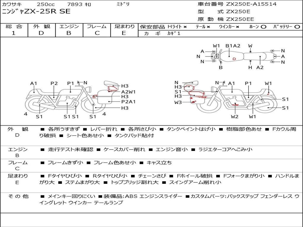 | Номер рамы / VIN | ZX250E-A15514 |
