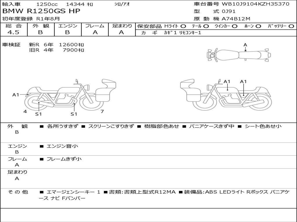| Номер рамы / VIN | WB10J9104KZH35370 |