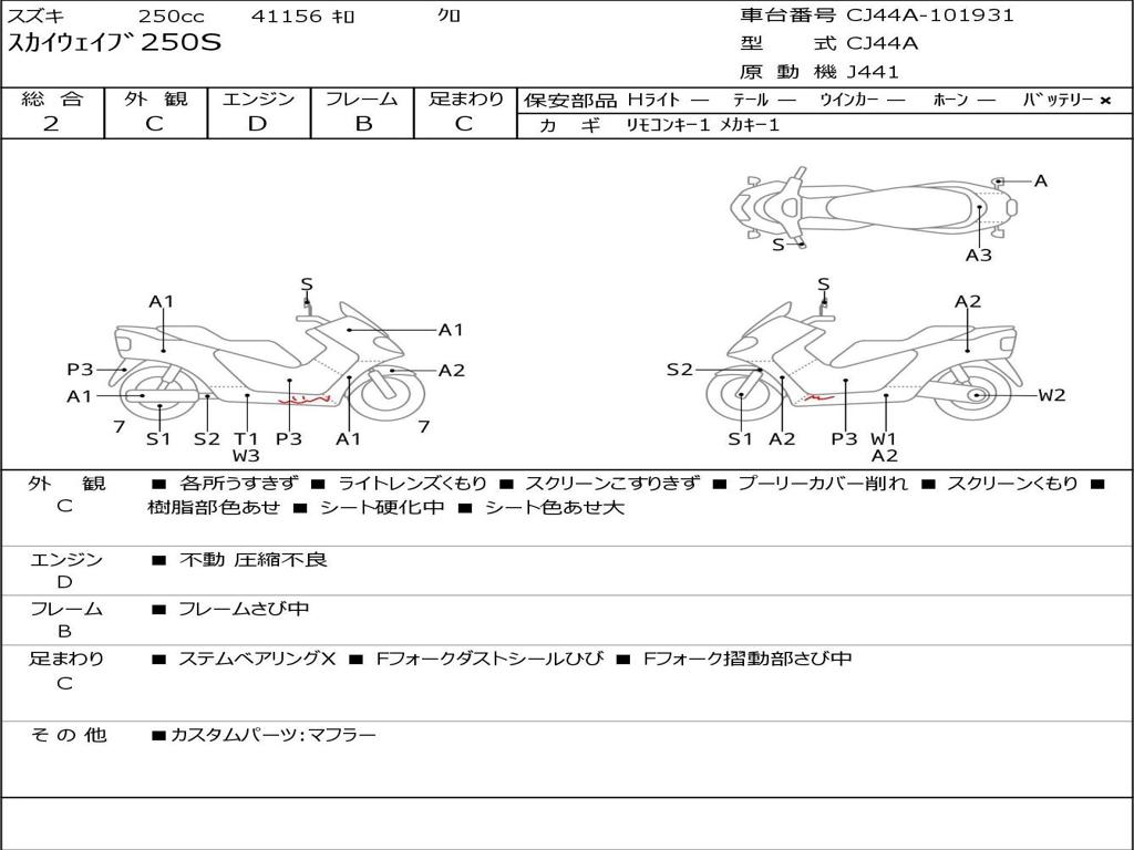 | Номер рамы / VIN | CJ44A-101931 |