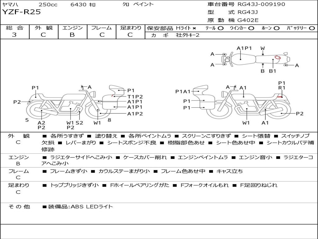 | Номер рамы / VIN | RG43J-009190 |