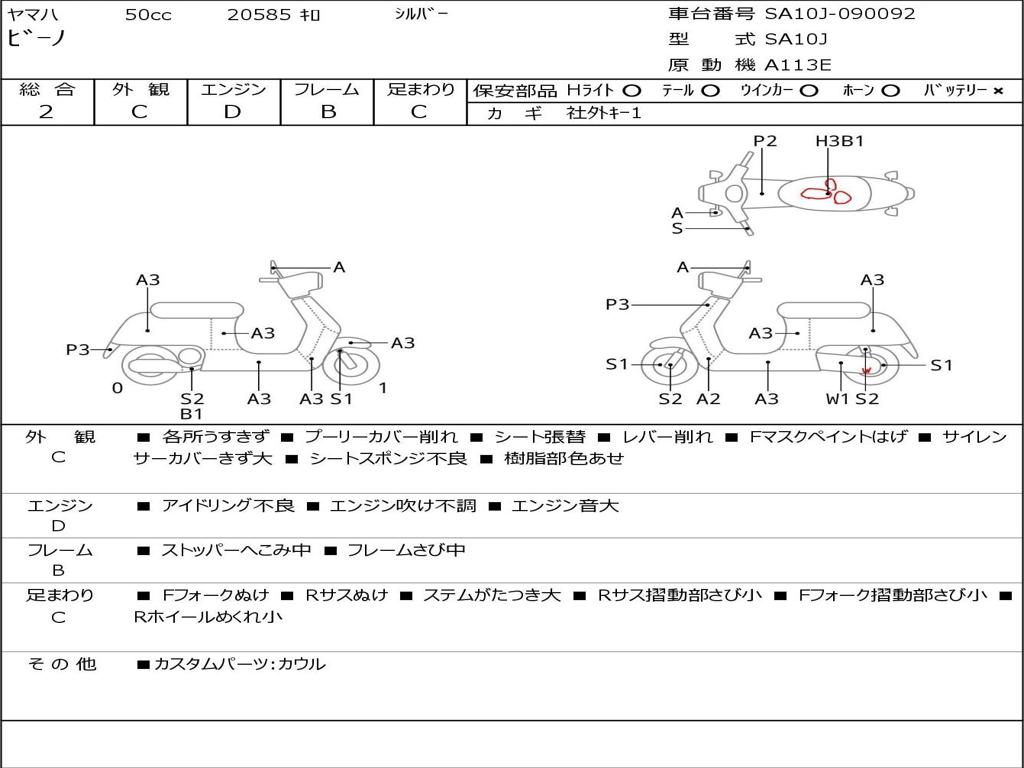 | Номер рамы / VIN | SA10J-090092 |