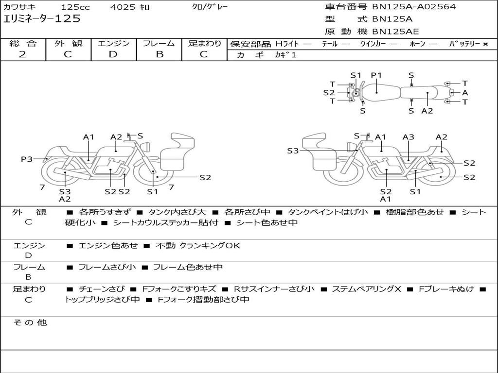 | Номер рамы / VIN | BN125A-A02564 |