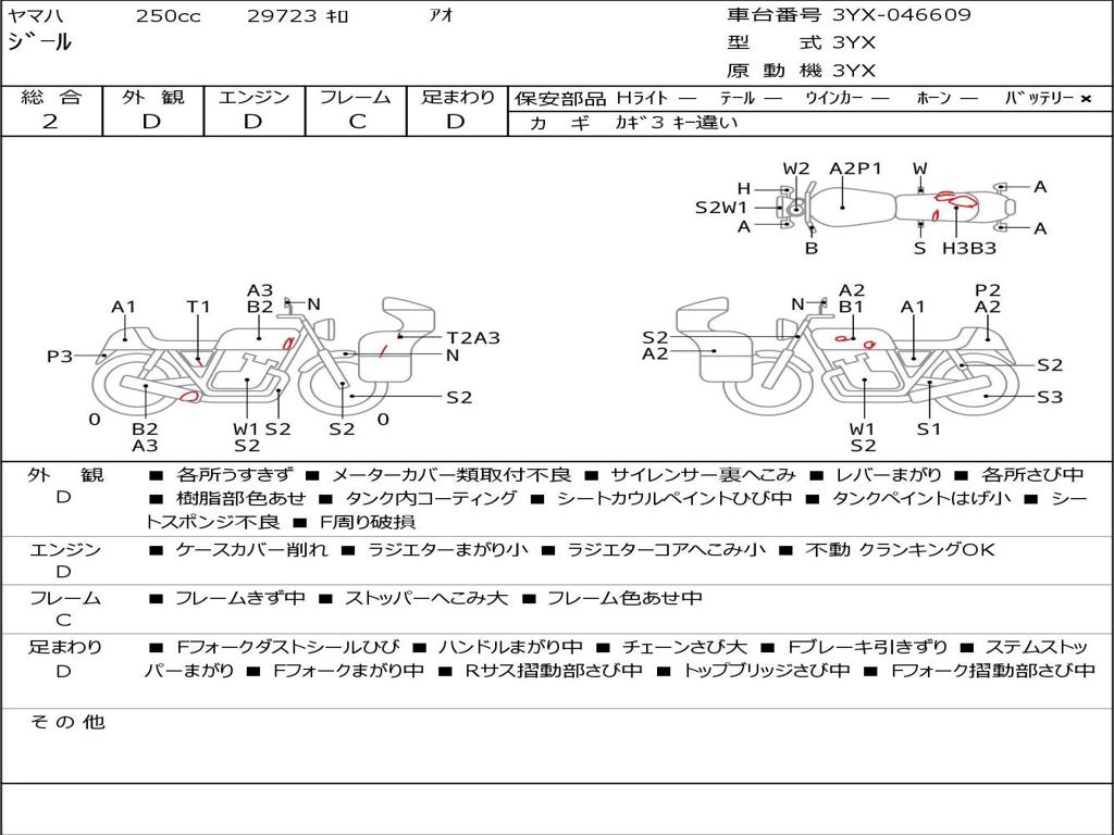 | Номер рамы / VIN | 3YX-046609 |