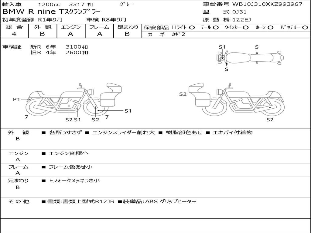 | Номер рамы / VIN | WB10J310XKZ993967 |