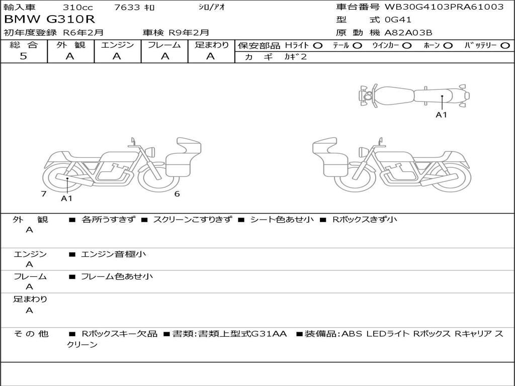 | Номер рамы / VIN | WB30G4103PRA61003 |