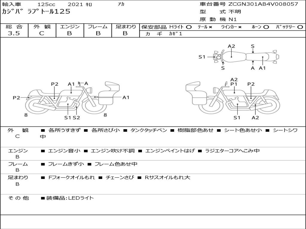 | Номер рамы / VIN | ZCGN301AB4V008057 |