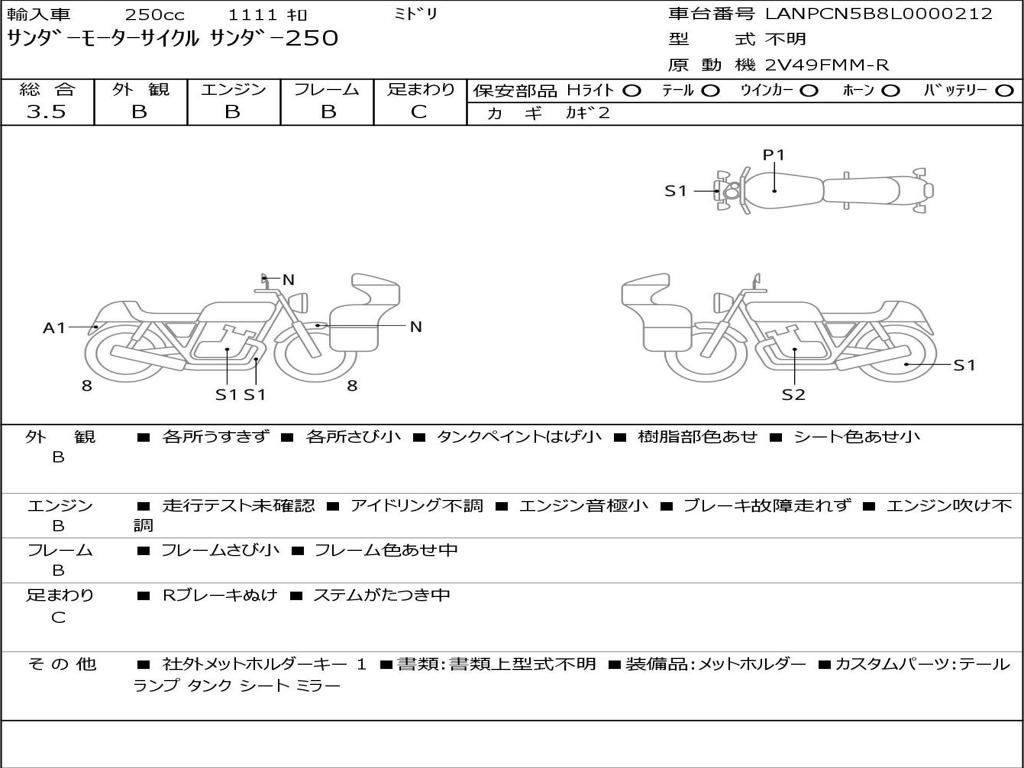 | Номер рамы / VIN | LANPCN5B8L0000212 |