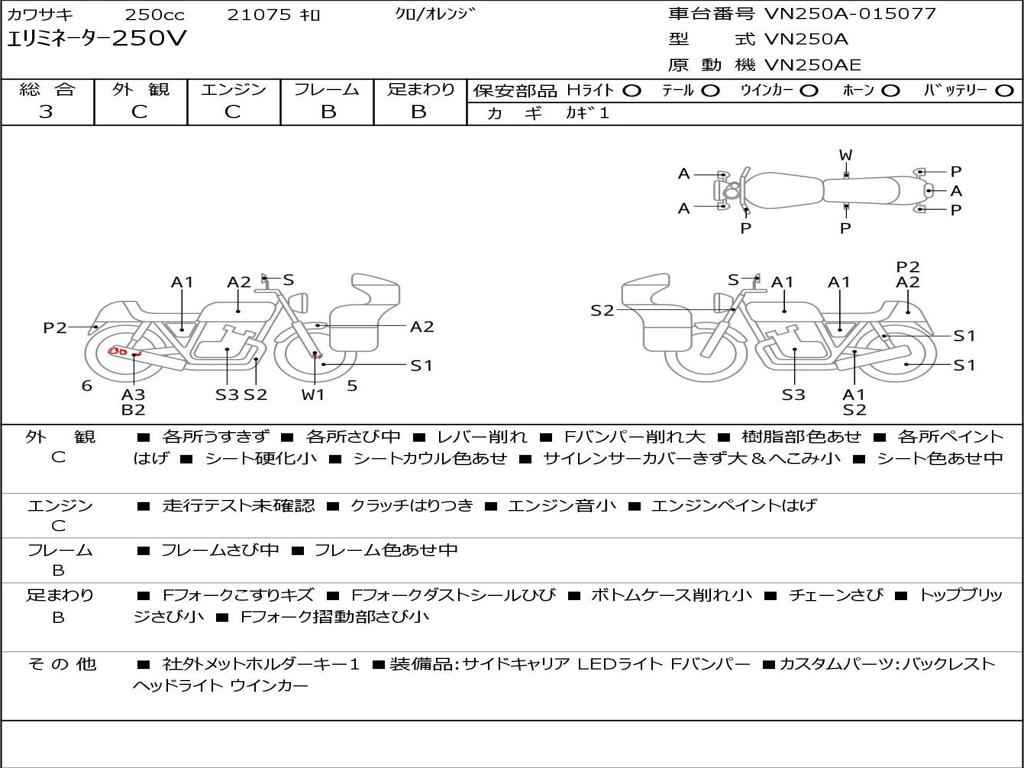 | Номер рамы / VIN | VN250A-015077 |