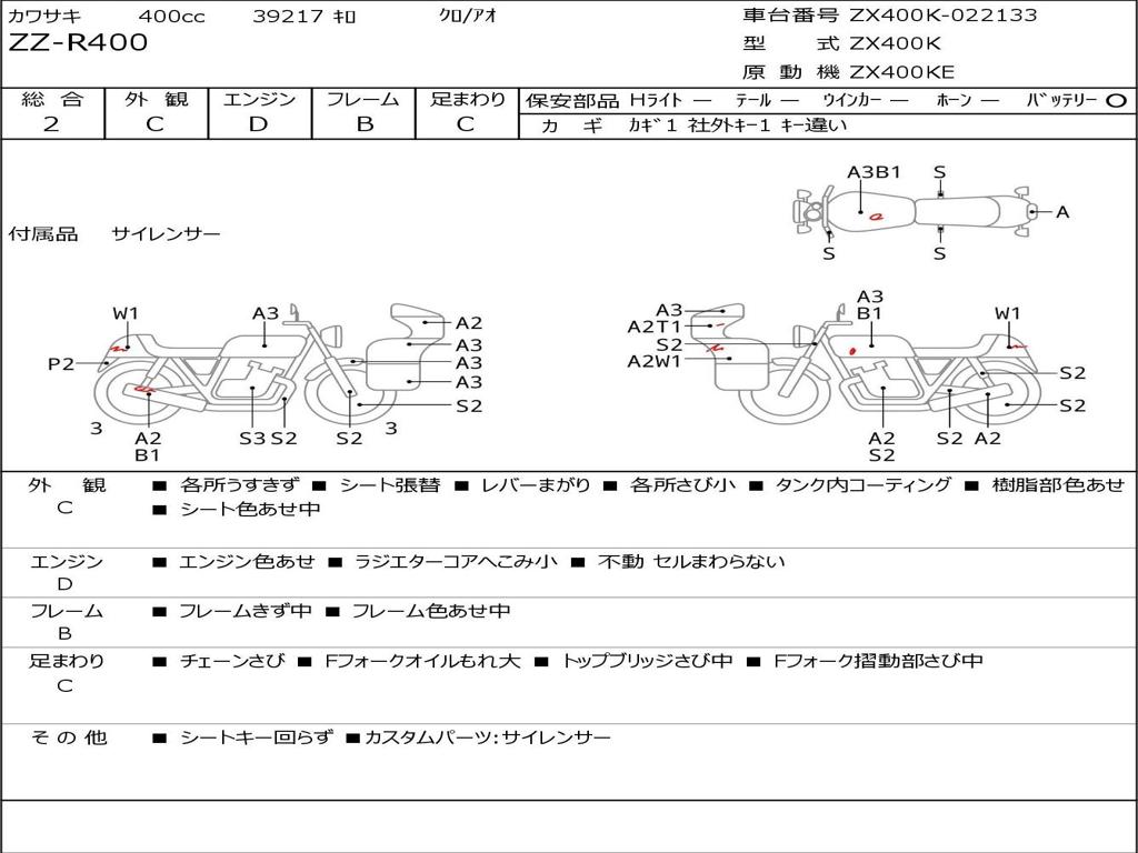 | Номер рамы / VIN | ZX400K-022133 |