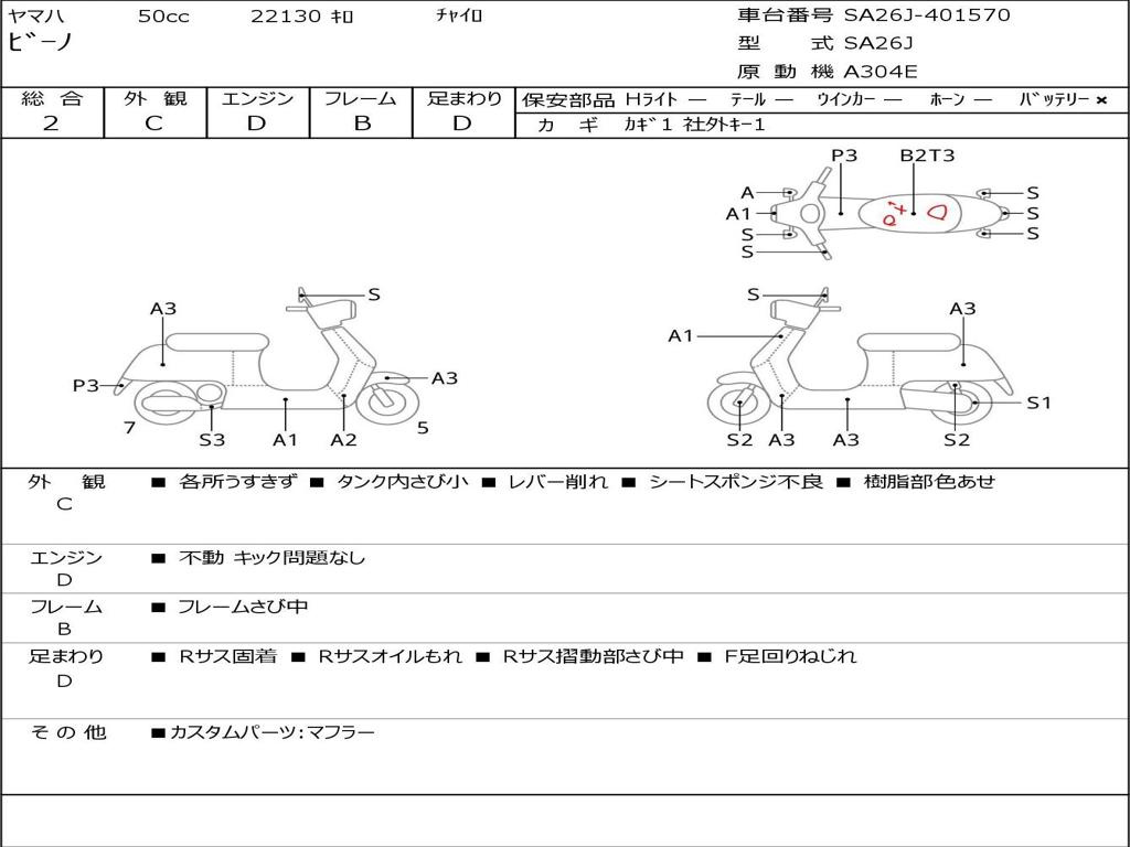| Номер рамы / VIN | SA26J-401570 |